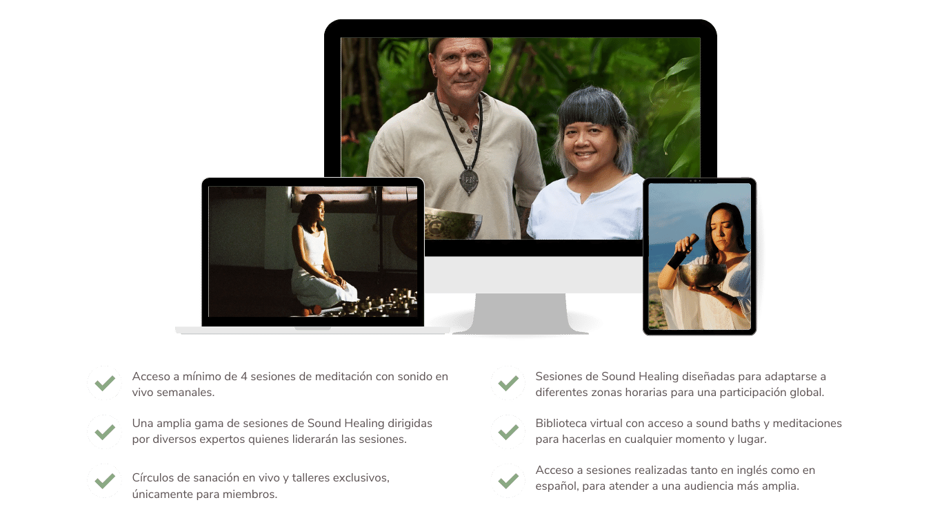 Únete a nuestra comunidad y experimenta los beneficios sanadores del Sound Healing desde la comodidad de tu hogar en cualquier momento.